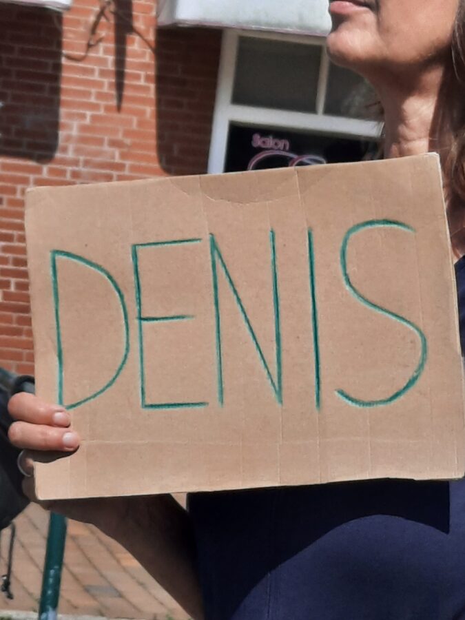 Langsam füllt sich der Platz. Menschen mit selbstgemachten Schildern, Fahnen, Westen versammeln sich. Auf einem der Schilder steht: »Free Denis«.