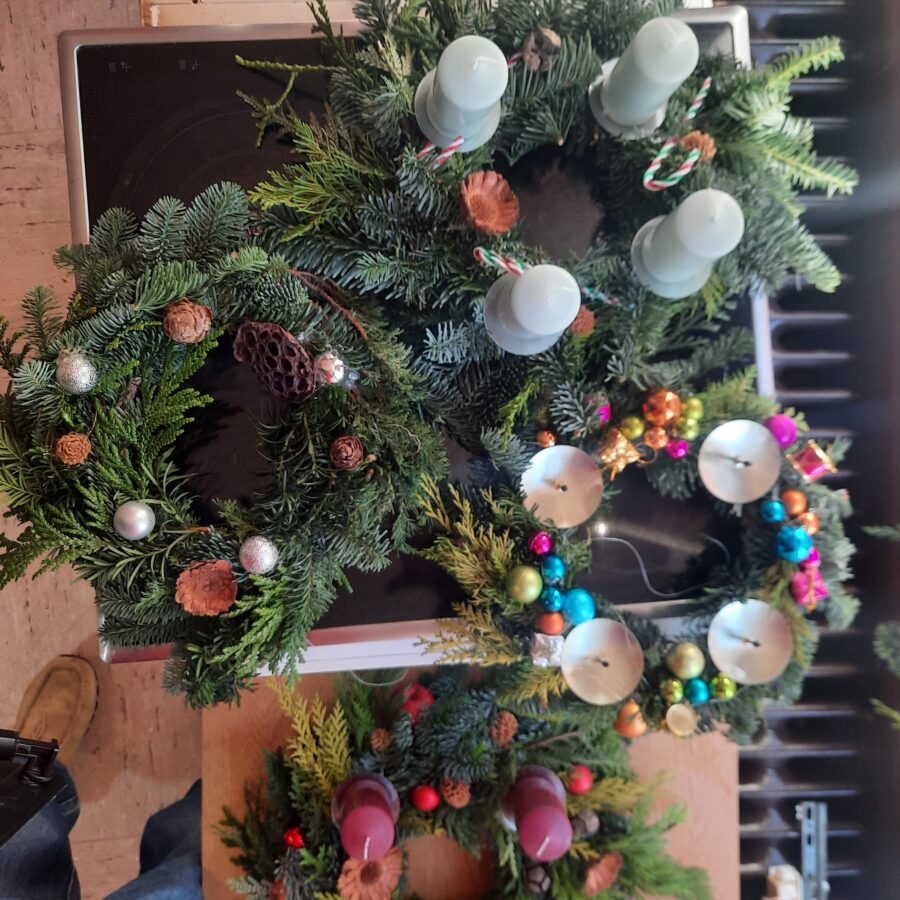 Insgesamt wurden 14 Kränze an diesem Abend gebunden, die dann im Anschluss, ein paar Tage später, persönlich in Rendsburg, Breiholz und Büdelsdorf übergeben wurden.